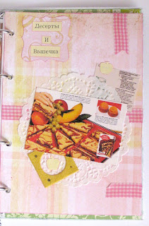 Думаю, что буду ее заполнять вроде смэш-бука, т.е. кое-что будет распечатано на принтере (например рецепты из интернета), какие-то страницы будут слегка украшены штампами и декоративным скотчем, где-то будут приклеены вырезки из журналов, ну как-то так ))